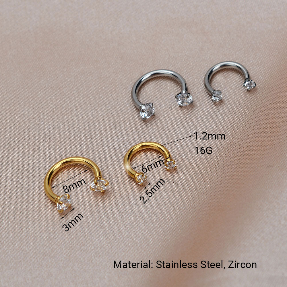 1PC Stainless Steel Fashion Crystal CZ Hoop Women Tragus Cartilage Helix Studs Earrings Conch Rook Daith Lobe Piercing Jewelry