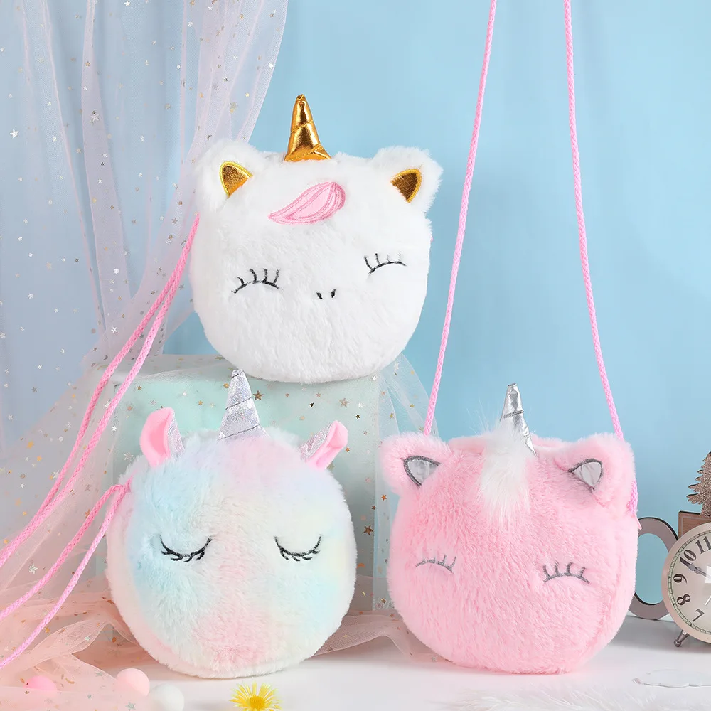 Fashion Children Girls Shoulder Bag Cute Unicorn Animals Messenger Bag Kids Keys Coin Purse Cute Princess Mini Handbag Plush Toy