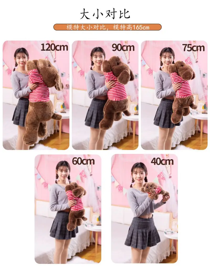 Giant Plush Toy Big Sleeping Dog Stuffed Striped T-shirt Puppy Dog Soft Animal Toy Soft Pillow Baby Girls Birthday Gift
