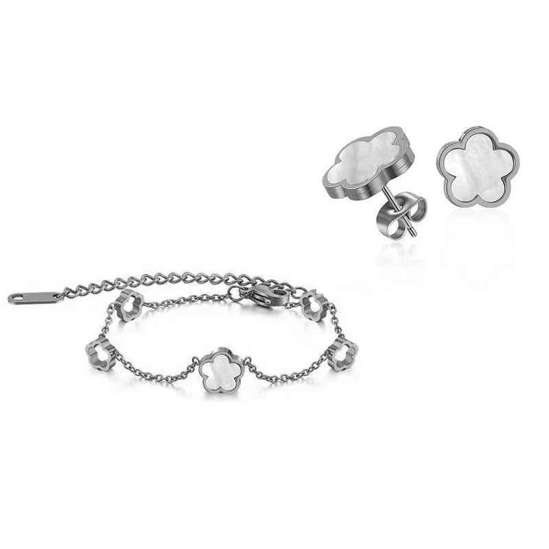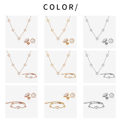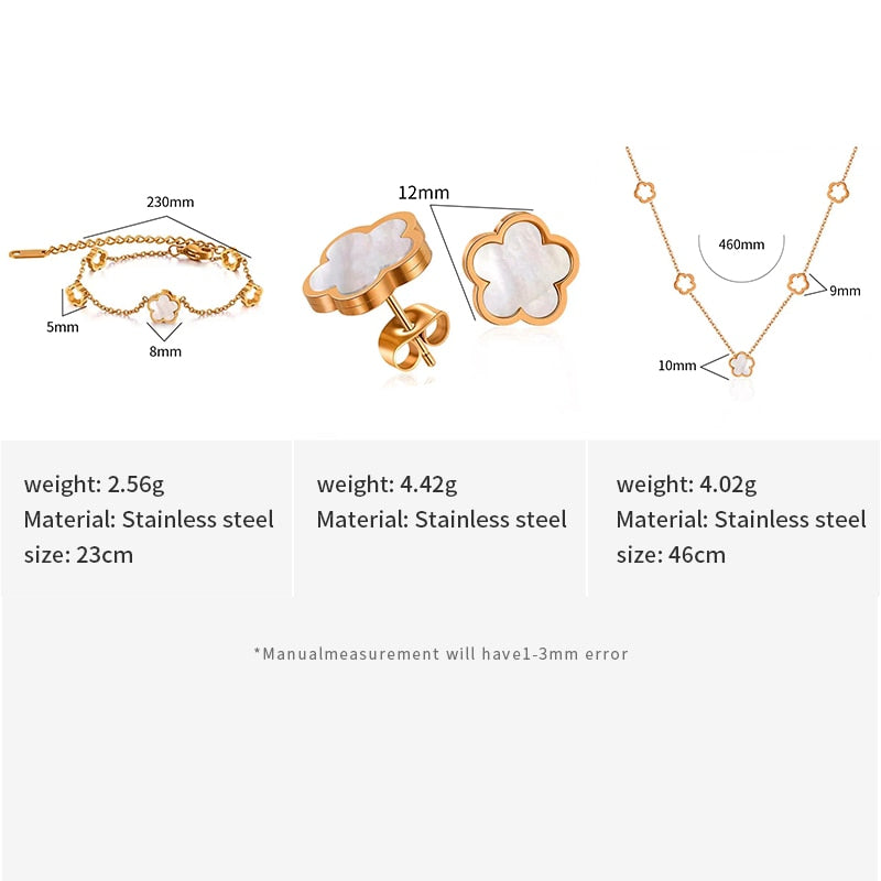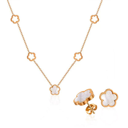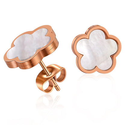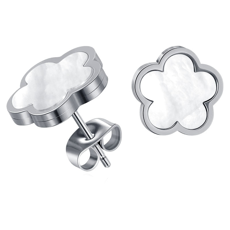 Luxury Elegant 2Pcs Stainless Steel White Shell Flower Stud Earrings Sets for Women New Fashion Earrings Charm Jewelry