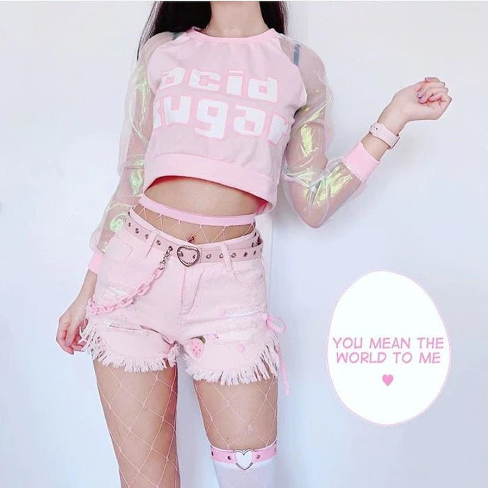 Introducing our irresistibly cute denim jean shorts that will make you the ultimate fashion darling this summer. These shorts are an absolute must-have for anyone who adores sweet, kawaii fashion and the enchanting aesthetics of pastel fairy kei. Prepare to steal hearts with your charming style!